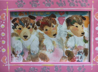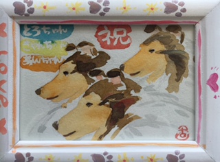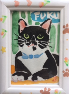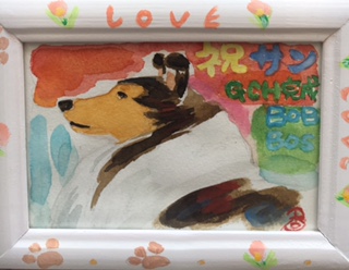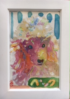 透明水彩 はがきサイズ 額アクリラ絵具で装飾